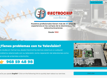 Web con blog para tienda de electrónica en Mazarrón. Mejora de la visivilidad de los servicios de la empresa.