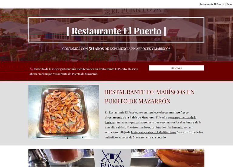 Web para restaurante en Puerto de Mazarrón. Aumento de visibilidad local, más integración de la carta.